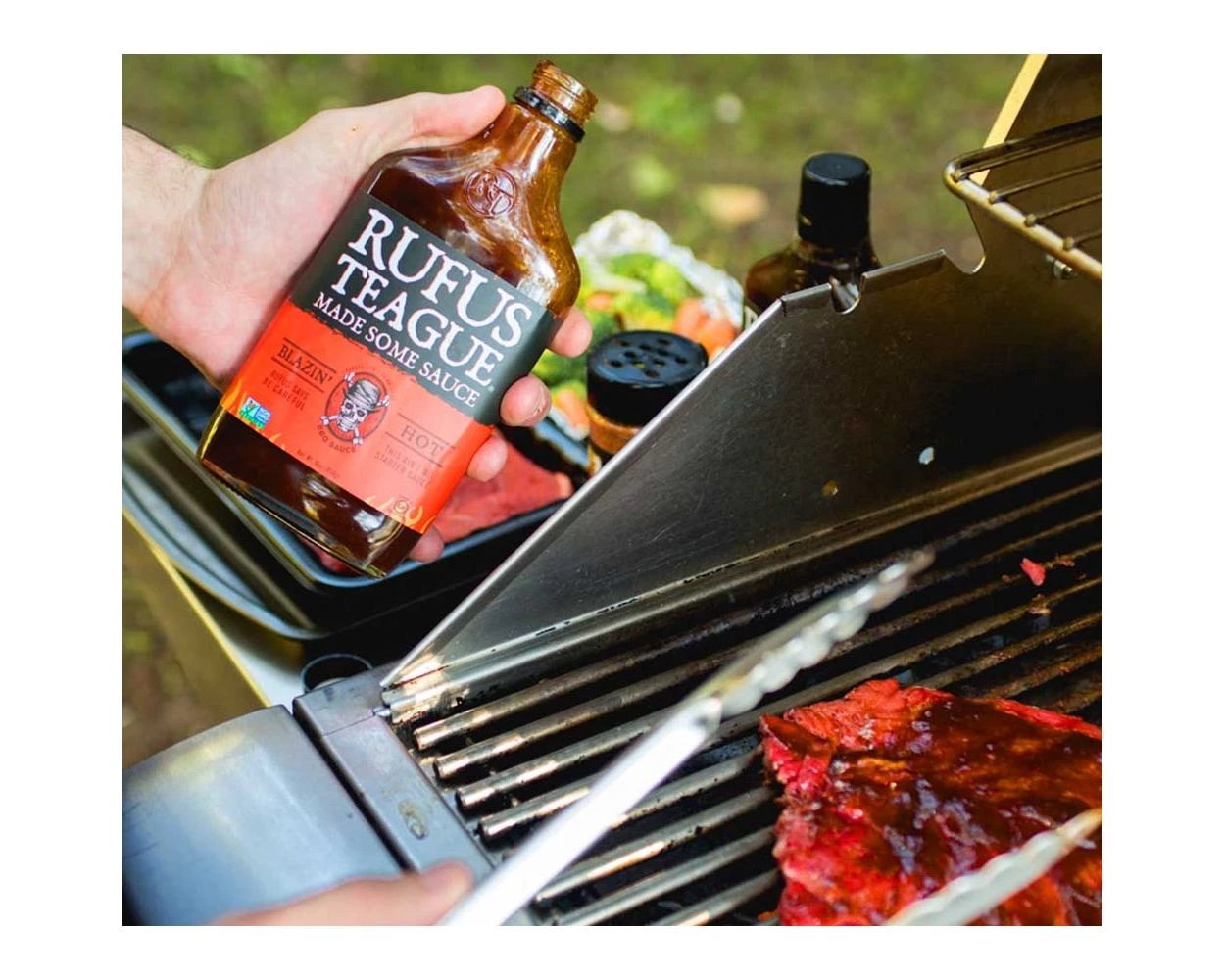 Der alte Rufus Teague hatte ein Gespür für gutes BBQ. Barbeque war seine Leidenschaft und der Legende nach arbeitete er besessen, um die besten Saucen und Gewürze herzustellen. Als er sie endlich perfektioniert hatte, füllte er sie in schöne Whiskyflaschen ab. Seine Rezepte leben noch heute weiter und Rufus Teague stellt weiterhin in Kansas City köstliche BBQ-Saucen mit den besten Zutaten her.