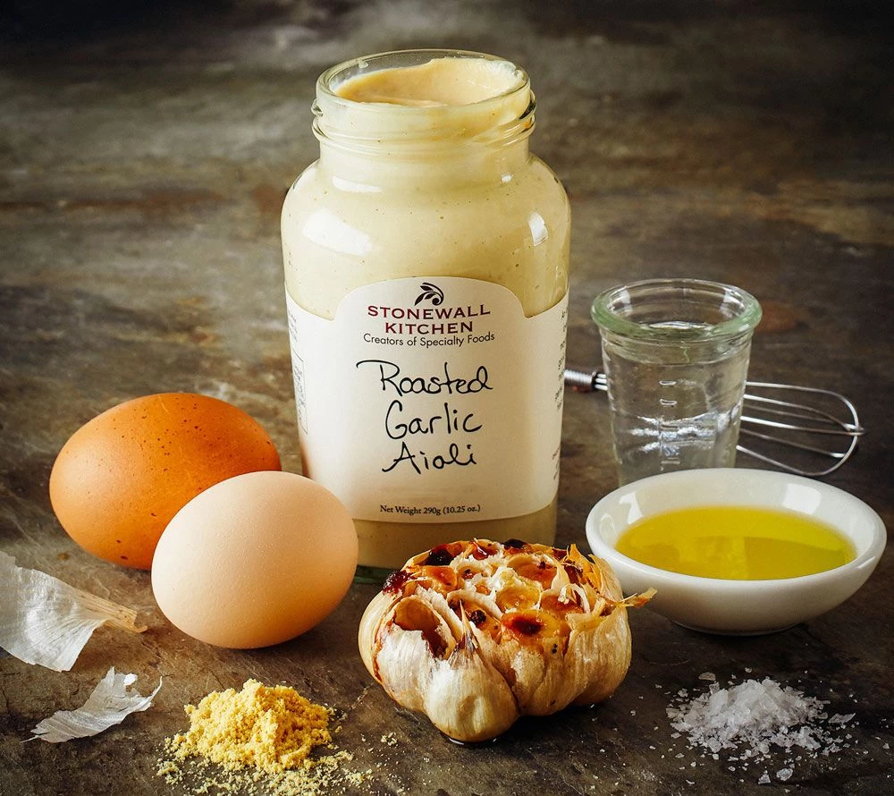 Unser cremiges Roasted Garlic Aioli von Stonewall Kitchen ist der perfekte Aufstrich für wahre Knoblauch-Freunde. Das einzigartig schmackhafte Aroma dieser klassisch französischen Mayonnaise charakterisiert sich besonders durch die über dem Feuer langsam gerösteten Knoblauchzehen. Ein Schuss weißer Essig und etwas Senf runden den durch und durch feinen Geschmack dieses Aiolis zusätzlich ab. Probieren Sie diese geschmacklich facettenreiche Mayonnaise zum Beispiel als Dip zu Pommes Frites und frischen Gemüsesticks, oder bereiten Sie damit Ihren eigenen Kartoffelsalat zu.