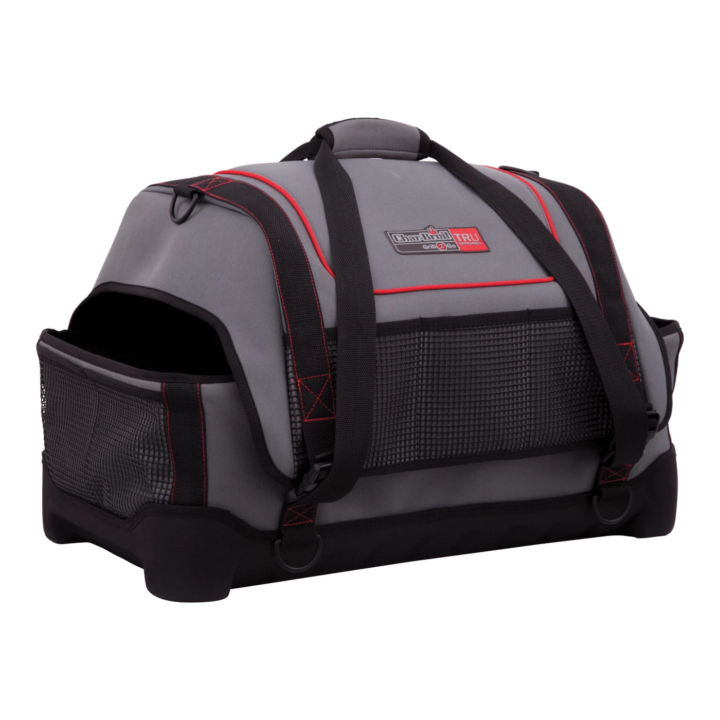Die maßgefertigte Tragetasche für den tragbaren Char-Broil® TRU-Infrared™ Grill2Go® X200 Gasgrill ist aus reißfesten Materialien gefertigt und somit robust genug für den Transport. Der Grill passt perfekt in die Tasche und lässt sich mit Schnallen sicher verschließen, damit Du ihn mit in den Park oder zu Freunden nehmen kannst. Mit den äußeren Aufbewahrungstaschen und Schlaufen ist auch genug Platz für Dein Zubehör garantiert.