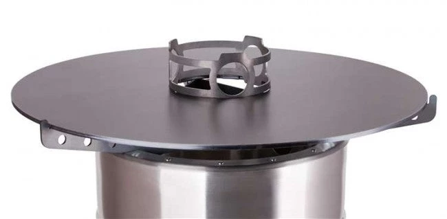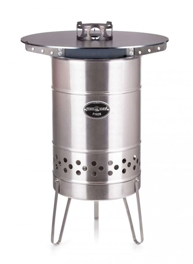 Der Kochaufsatz in der Mitte der Platte dient dir als stabile Abstellmöglichkeit von Töpfen, Kesseln und Kannen. So kannst du die Hitze des Pyron nutzen, um mit deinen Freunden ganze Gänge auf der 57 Zentimeter breiten Platte zuzubereiten. Die großzügigen Aussparungen versorgen die Feuertonne auch mit Kochgeschirr auf dem Aufsatz mit genügend frischem Sauerstoff, um das Feuer brennen zu lassen. Außerdem ermöglicht dir das Loch in der Mitte des Aufsatzes ein sicheres Nachfüllen von Holz während der Benutzung. Bitte lies dir vor dem ersten Gebrauch die beiliegende Bedienungsanleitung gut durch.