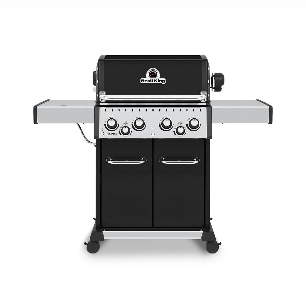 Der Baron™ 490 verfügt über massive Gussroste, dem Flav-R-Wave Verdampfersystem, 4 Edelstahl Dual-Tube™ Brenner, sowie klappbare Edelstahl Seitenablagen und einem geschlossenen Unterwagen, schwarz lackierten Türen, sowie über einen schwarzen, doppelwandigen Deckel.