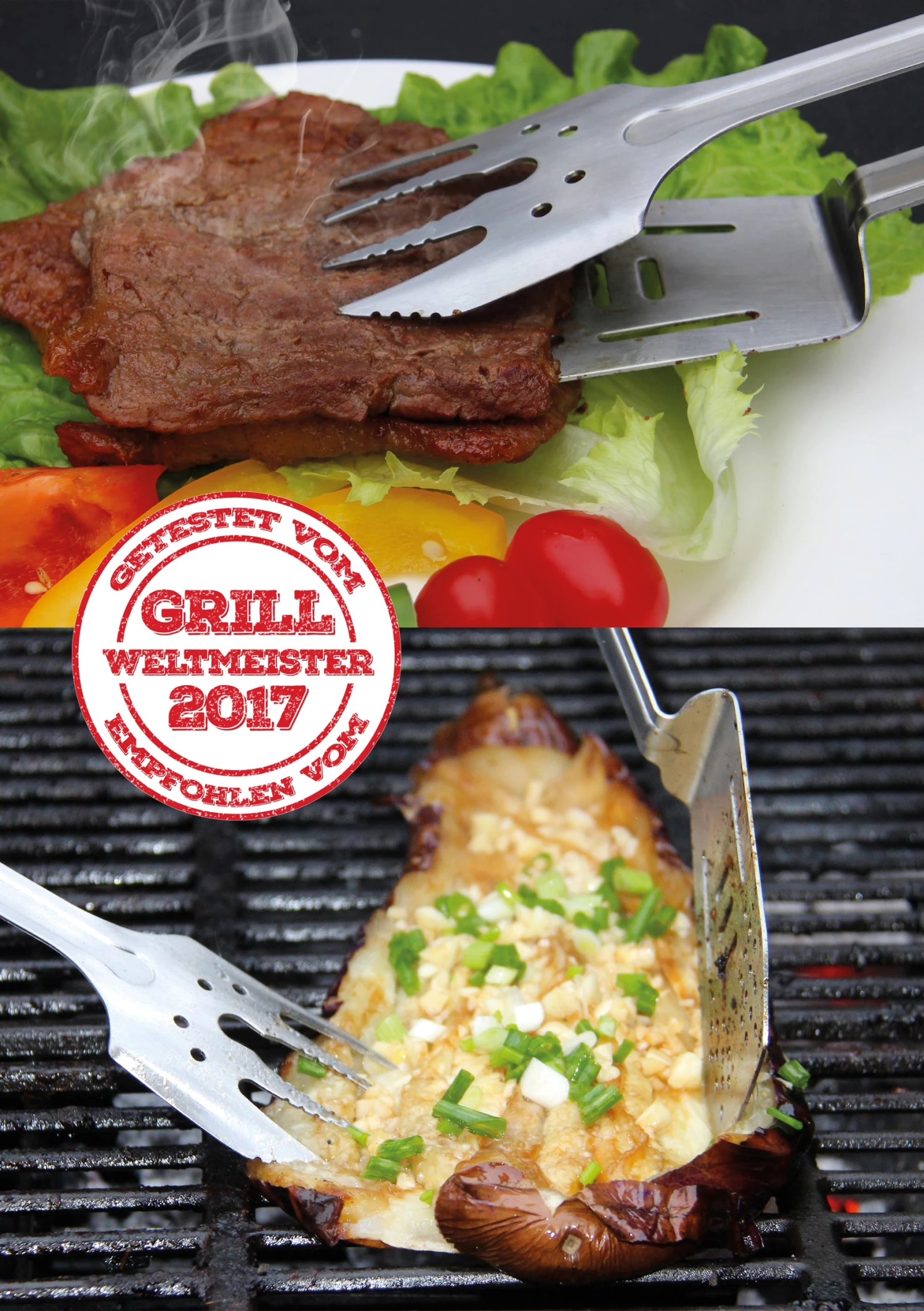 Gabel und Pfannenwender können zu einer Grillzange gekoppelt werden