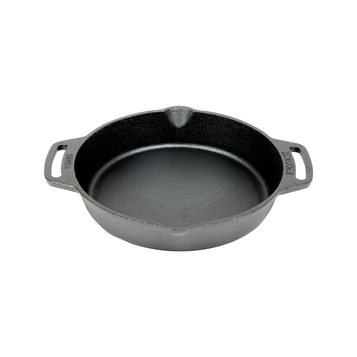Die VH25H-Pfanne von Valhal Outdoor hat einen Durchmesser von 25 cm und zwei Griffe. Die Pfanne hat auch beidseitige Ausgüsse, um beispielsweise Saucen leicht einschenken zu können. Da die Pfanne vollständig aus Gusseisen besteht, ist sie für alle Wärmequellen geeignet. So können Sie drinnen auf Ihrem Herd, aber auch am Lagerfeuer in Ihrem Garten oder in der Natur kochen. Diese Pfanne ist beliebt bei Grillern mit Keramikgrill oder Weber. Dieses Modell ist auch in 15cm, 20cm, 30 cm und 50 cm Durchmesser erhältlich. Die Pfanne hat ein solides Design, ist aber aufgrund des Valhal Outdoor Viking-Kopfes am Boden der Pfanne immer noch cool.